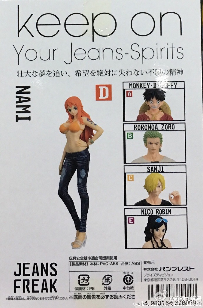 眼鏡廠 DXF 牛仔褲 特別配色套裝 蒙奇·D·路飛 &羅羅亞·佐羅&山治&娜美&妮可·羅賓 D 800日圓 (HBP-37005)